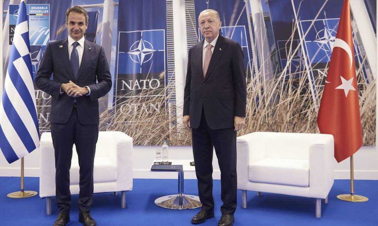 Στη συνάντηση του Κυριάκου Μητσοτάκη με τον Ρετζέπ Ταγίπ Ερντογάν επικεντρώθηκε το ελληνικό ενδιαφέρον αναφορικά με τη Σύνοδο του ΝΑΤΟ στις Βρυξέλλες. Οι δυο ηγέτες συζήτησαν για 50 λεπτά πίσω από κλειστές πόρτες και χωρίς την παρουσία μεταφραστών, σε έναν απευθείας διάλογο για τις ελληνοτουρκικές σχέσεις.
