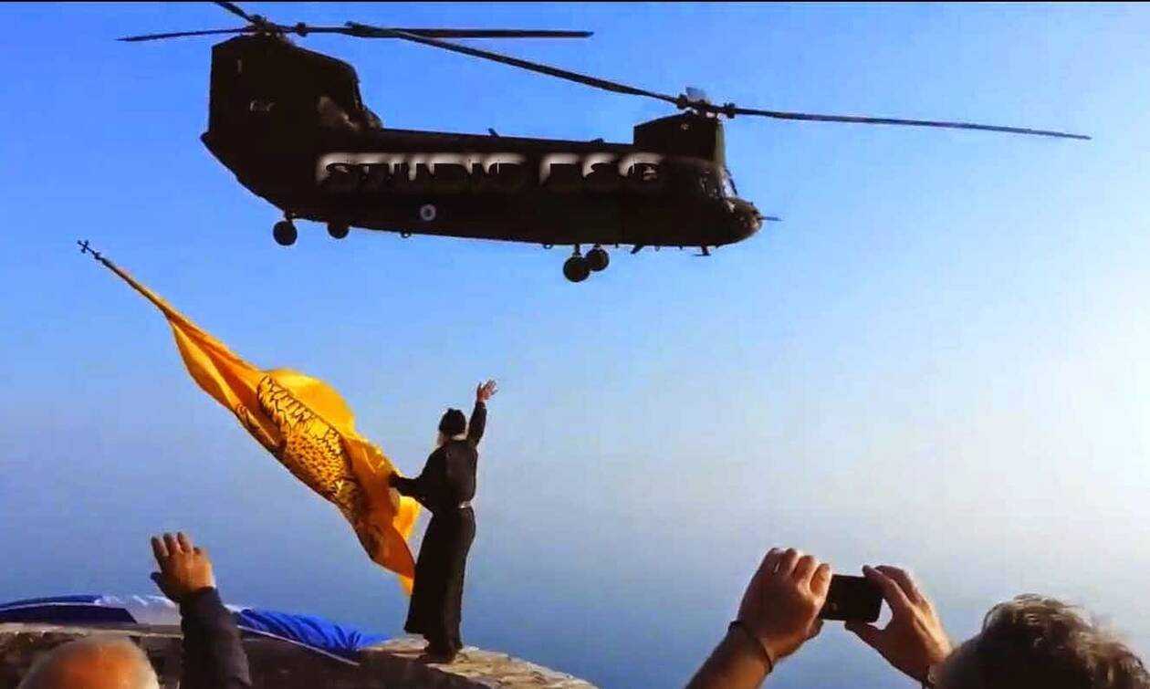 Το ίδιο ακριβώς έκανε την Παρασκευή (18/06) και ο Αρχηγός ΓΕΕΘΑ, Στρατηγός Κωνσταντίνος Φλώρος πετώντας δίπλα από το μοναστήρι και παίρνοντας την ευχή του Μοναχού Ιωσήφ που βγήκε στο μπαλκόνι κουνώντας την ελληνική σημαία.
