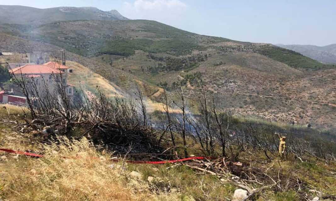 Στο σημείο επιχειρούν 18 πυροσβέστες με 6 οχήματα, ενώ συνδράμουν εθελοντές και υδροφόρες της Τοπικής Αυτοδιοίκησης.