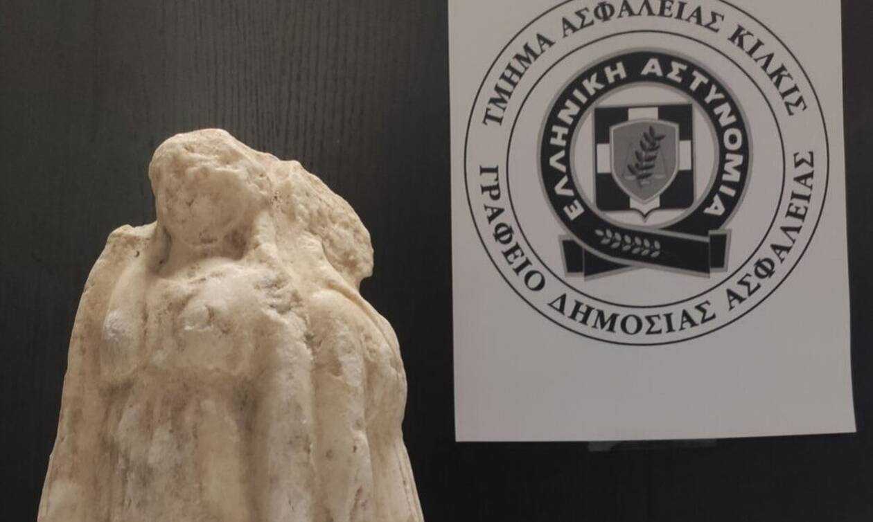 Τρεις άνδρες, δύο 56χρονοι και ένας 35χρονος, συνελήφθησαν από αστυνομικούς του Τμήματος Ασφαλείας Κιλκίς διότι επιχείρησαν να πουλήσουν αρχαίο αγαλματίδιο έναντι 40.000 ευρώ. Σύμφωνα με την πρώτη αρχαιολογική εκτίμηση, το αγαλματίδιο εμπίπτει στις προστατευτικές διατάξεις της νομοθεσίας και απεικονίζει τη θεότητα της ελληνικής μυθολογίας Τρίμορφη Εκάτη ενώ χρονολογείται τον 2ο – 3ο αιώνα μ.Χ.