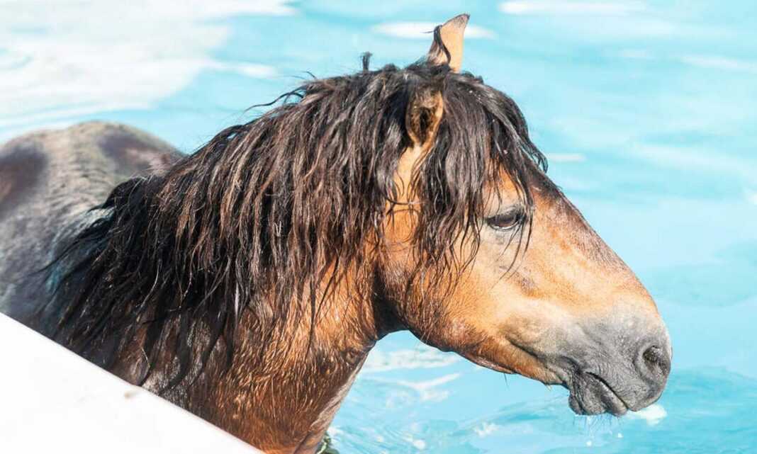 Ένα πανέμορφο άλογο του Αίνου βούτηξε την Κυριακή (27/6) σε πισίνα ξενοδοχείου σε χωριό του Κατελειού, στο νησί της Κεφαλονιάς.