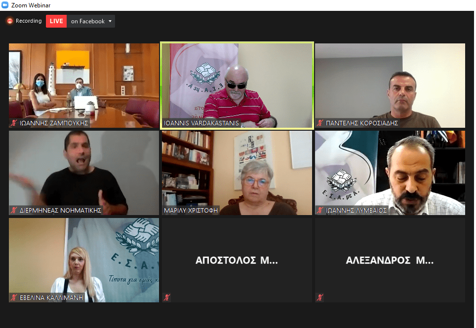 Συντονιστής ήταν ο γενικός γραμματέας της ΕΣΑμεΑ Γιάννης Λυμβαίος. Η εκδήλωση είχε μεγάλη διαδικτυακή «προσέλευση», αναδεικνύοντας την ανάγκη του κόσμου για νέα γνώση αναφορικά με τα ζητήματα πολιτικής προστασίας. Στην έναρξη χαιρέτησαν ο δήμαρχος Αλεξανδρούπολης Ιωάννης Ζαμπούκης και ο πρόεδρος της ΕΣΑμεΑ Ιωάννης Βαρδακαστάνης.