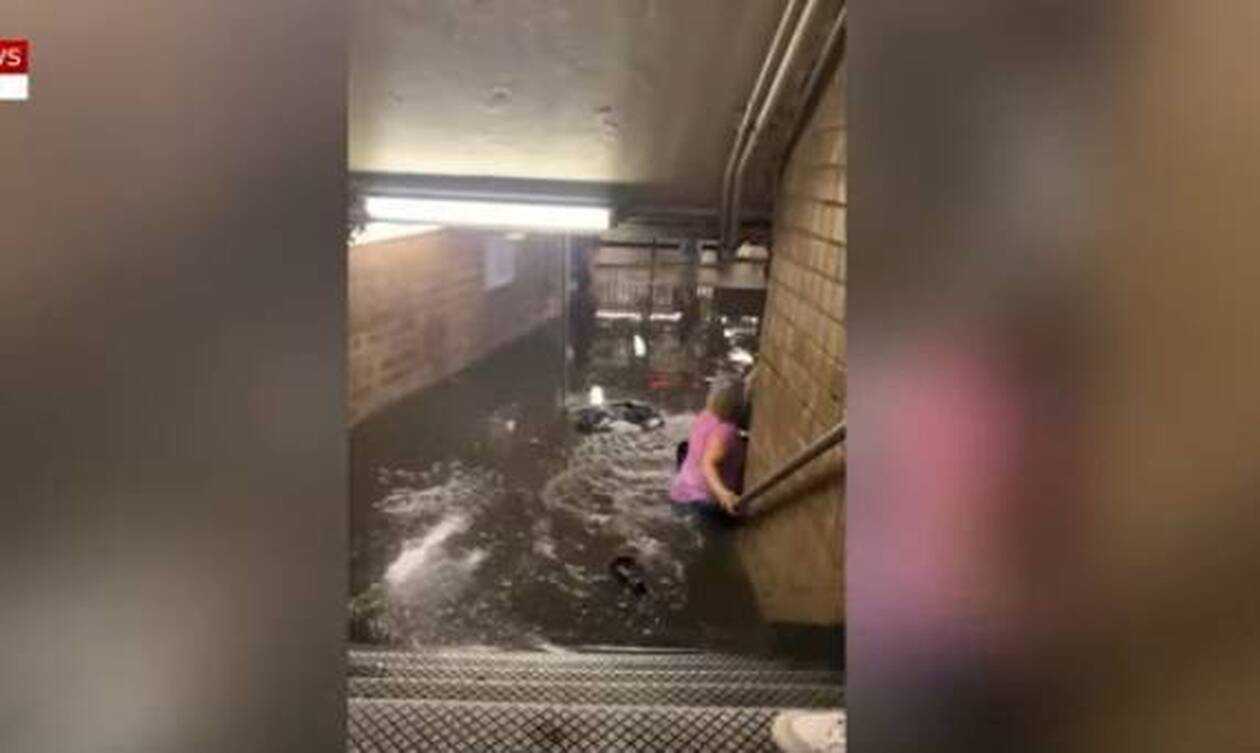 Συγκλονιστικά βίντεο δείχνουν πολίτες να περπατάνε, με το νερό να φθάνει μέχρι τη μέση τους, καθώς προσπαθούν να φτάσουν στην πλατφόρμα στον σιδηροδρομικό σταθμό της οδού 157th Street στο Washington Heights.