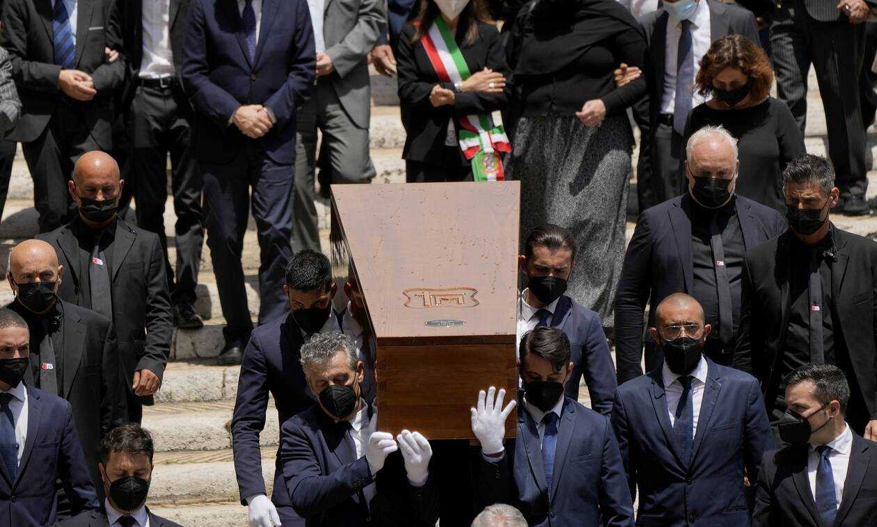 Η εκκλησία γέμισε κίτρινα λουλούδια, το αγαπημένο χρώμα της Ιταλίδας τραγουδίστριας, τηλεπαρουσιάστριας και σόουγούμαν. Το φέρετρο ήταν σε απλό, ακατέργαστο ξύλο, όπως είχε ζητήσει η ίδια.
