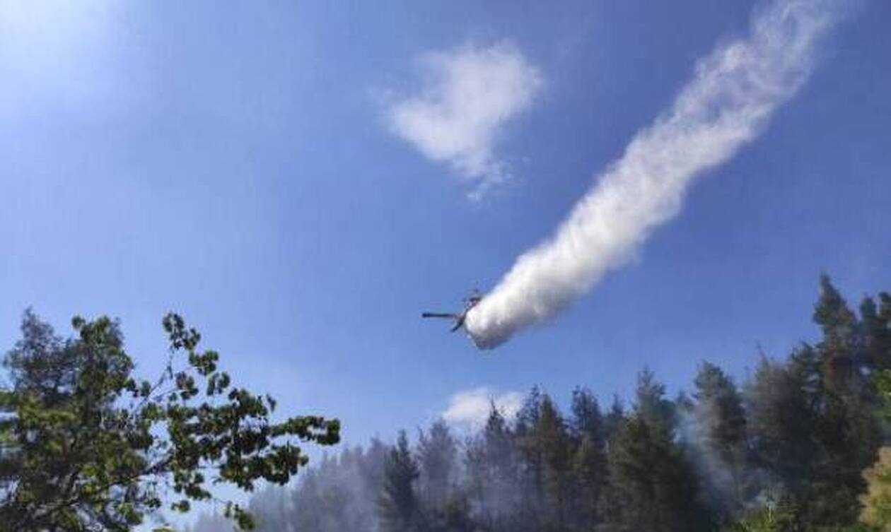 Ταχύτατα δυο αεροσκάφη και δυο ελικόπτερα πραγματοποίησαν ρίψεις, ενώ την ίδια στιγμή βρέθηκαν στο σημείο και επίγειες δυνάμεις.