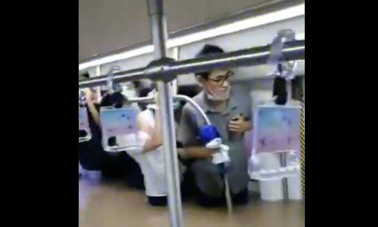 Ενδεικτικά της κατάστασης στην πόλη τα βίντεο με επιβάτες του μετρό να βρίσκονται στο νερό μέχρι το λαιμό μέσα σε βαγόνι.