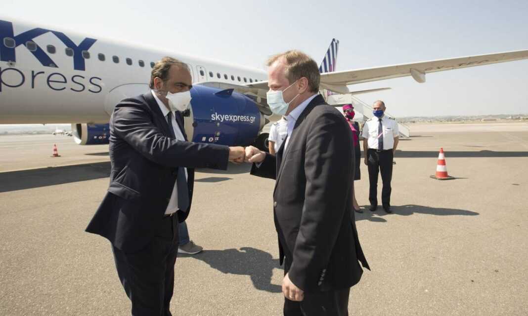 Όπως τόνισε ο Υπουργός Υποδομών και Μεταφορών κ. Κώστας Καραμανλής: “Στην κυβέρνηση του Κυριάκου Μητσοτάκη έχουμε πάρει την απόφαση να στηρίξουμε ενεργά τον κλάδο των αερομεταφορών, που δοκιμάστηκε από την κρίση της πανδημίας αλλά έχει υγιείς επιχειρήσεις και είναι πάντα κρίσιμος για την οικονομία και για την κοινωνία μας. Μας δίνει μεγάλη χαρά και δικαιώνει την πολιτική μας, να βλέπουμε μέσα σε ένα περιβάλλον υγιούς ανταγωνισμού, δυναμικές ελληνικές επιχειρήσεις, όπως η SKY express, παρά την κρίση, να επενδύουν, να μεγαλώνουν και να στηρίζουν έμπρακτα την ελληνική οικονομία και το επιβατικό κοινό”.