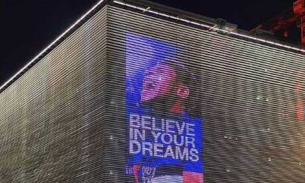 Τη φωτογραφία του Γιάννη Αντετοκούνμπο, με την λεζάντα “Believe in your dreams” προέβαλε η Στέγη Ιδρύματος Ωνάση στο κτήριο επί της Συγγρού, μετά την τεράστια επιτυχία του Έλληνα μπασκετμπολίστα.