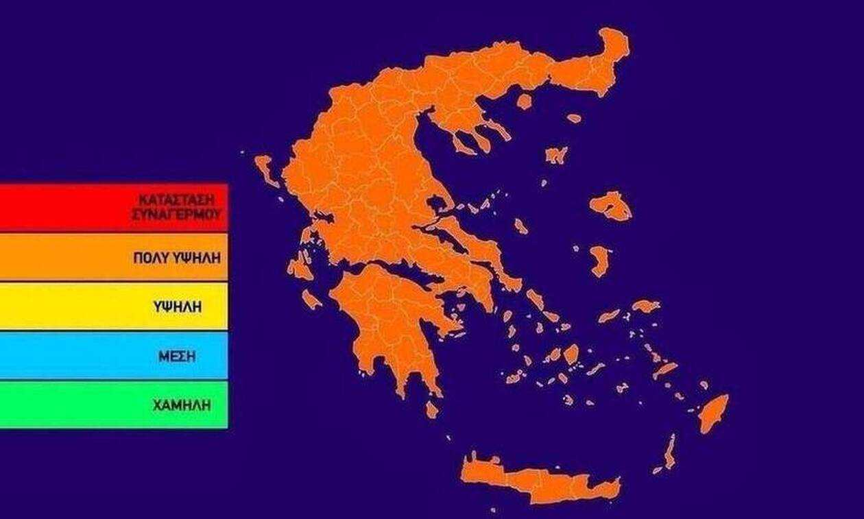 Σύμφωνα με το Χάρτη Πρόβλεψης Κινδύνου Πυρκαγιάς που εκδίδει η Γενική Γραμματεία Πολιτικής Προστασίας του Υπουργείου Προστασίας του Πολίτη (www.civilprotection.gr), για αύριο Παρασκευή 23 Ιουλίου 2021, προβλέπεται πολύ υψηλός κίνδυνος πυρκαγιάς (κατηγορία κινδύνου 4) για τις εξής περιοχές: