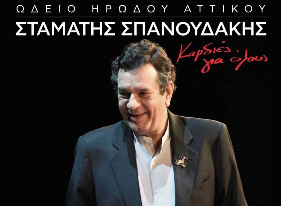 Στο Ωδείο Ηρώδου Αττικού την Παρασκευή 17 Σεπτεμβρίου 2021, ώρα 21:00, ο Σταμάτης Σπανουδάκης θα δώσει μία συναυλία υπέρ του ανθρωπιστικού, μη κερδοσκοπικού φορέα «Coeurs pour Tous Hellas» για τα παιδιά με συγγενή καρδιοπάθεια.