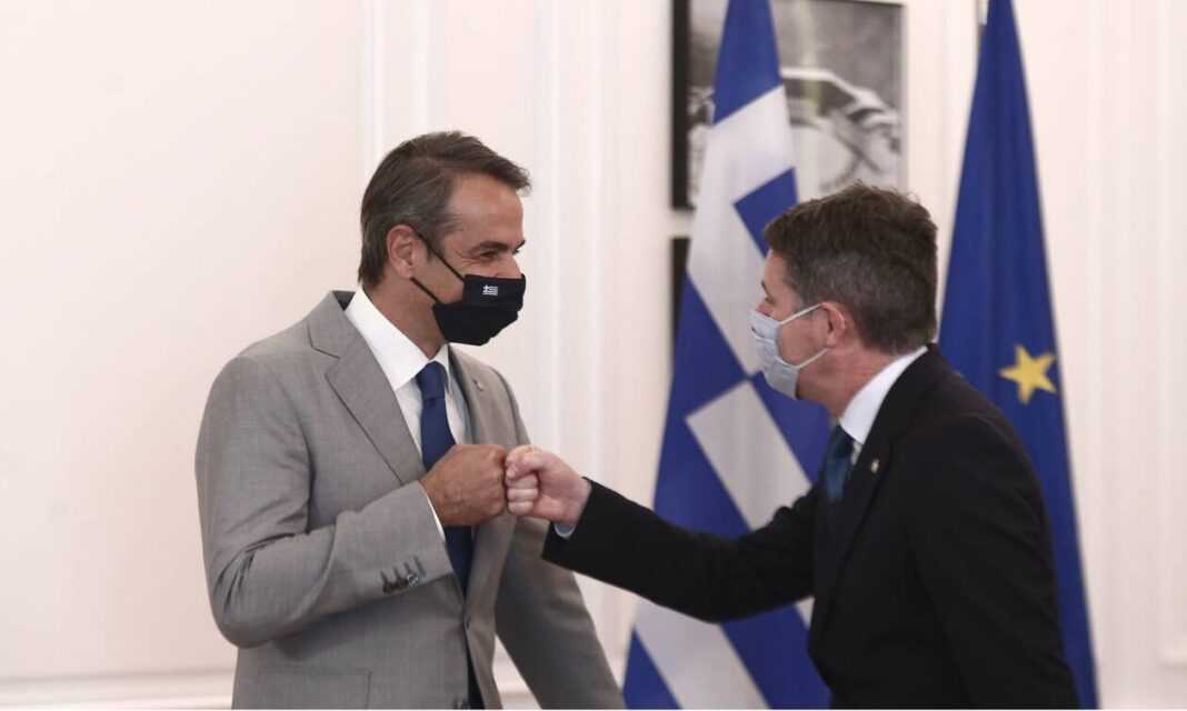 Ο Πρωθυπουργός Κυριάκος Μητσοτάκης συναντήθηκε το μεσημέρι της Παρασκευής (23/7) στο Μέγαρο Μαξίμου με τον Πρόεδρο του Eurogroup και Υπουργό Οικονομικών της Ιρλανδίας Πασκάλ Ντόναχιου