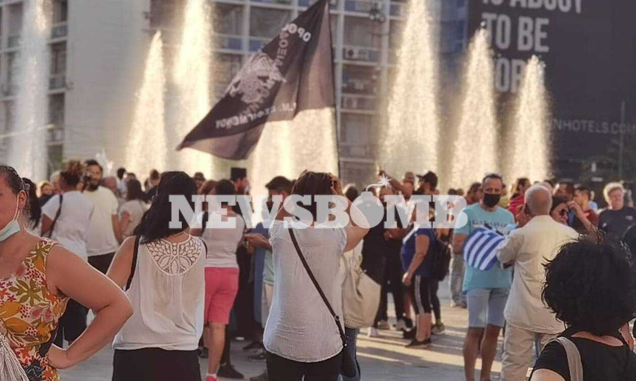 Πάνω από 600 αρνητές του εμβολίου πραγματοποίησαν συγκέντρωση στην Ομόνοια και κάνουν πορεία προς τη Βουλή.