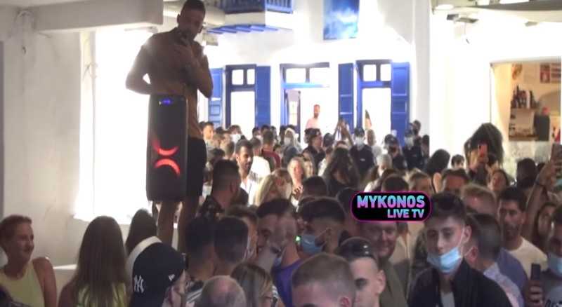 Ένα μεγάλο, φορητό ηχείο, ήταν αρκετό για να ξεκινήσει ένα πάρτι στα στενά της Μυκόνου