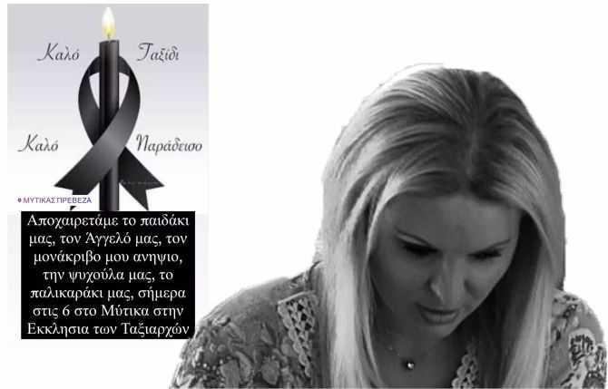 «Αποχαιρετάμε το παιδάκι μας, τον Άγγελο μας, τον μονάκριβό μου ανιψιό, την ψυχούλα μας, το παλικάρι μας, σήμερα στις 6 στο Μύτικα στην Εκκλησία των Ταξιαρχών», έγραψε η δημοσιογράφος.