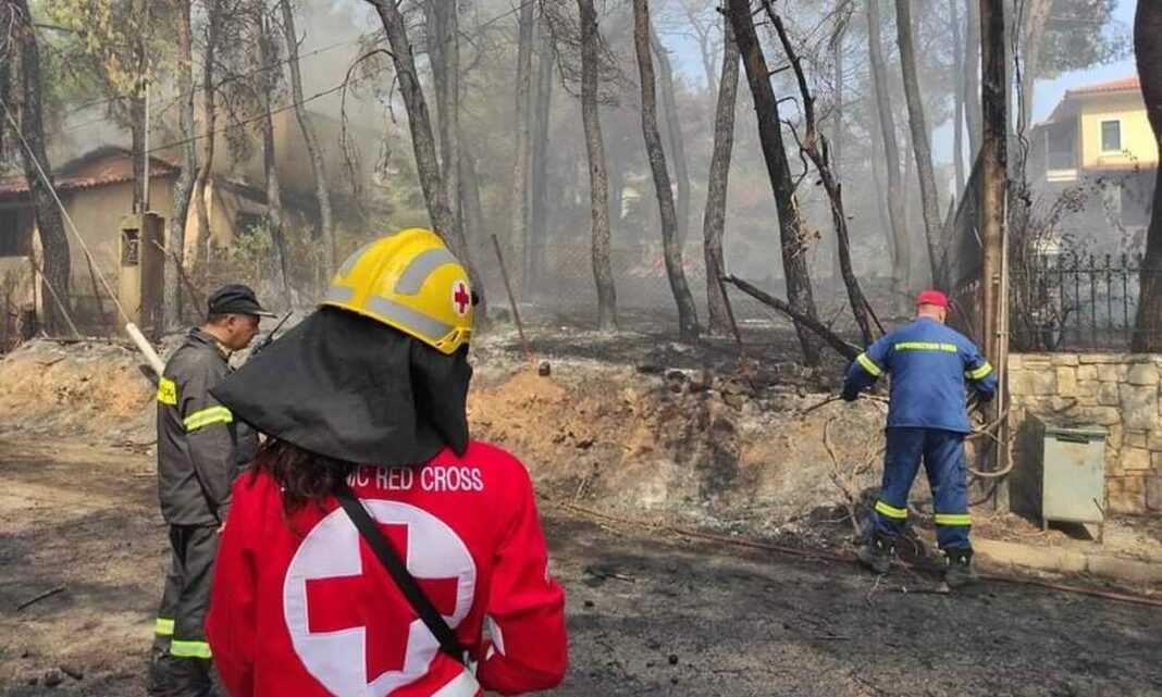 Ελληνικός Ερυθρός Σταυρός: Στην πρώτη γραμμή στη μάχη με τις φλόγες, στη Σταμάτα Αττικής