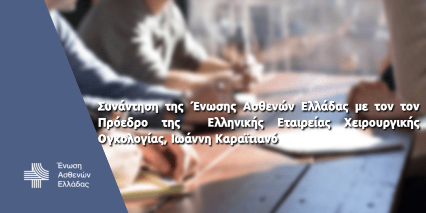 H Ένωση Ασθενών Ελλάδας πραγματοποίησε διαδικτυακή συνάντηση με τον Πρόεδρο της Ελληνικής Εταιρείας Χειρουργικής Ογκολογίας, Ιωάννη Καραϊτιανό, την Τρίτη 27 Ιουλίου 2021.