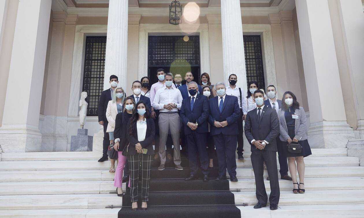 Τους νέους συνόδευαν, κατά την επίσκεψή τους στο Μέγαρο Μαξίμου, ο Υφυπουργός Εξωτερικών, αρμόδιος για τον Απόδημο Ελληνισμό, Κωνσταντίνος Βλάσης, ο Επίτροπος της Κυπριακής Προεδρίας αρμόδιος για Ανθρωπιστικά Θέματα και Θέματα Αποδήμων, Φώτης Φωτίου και ο Γενικός Γραμματέας Απόδημου Ελληνισμού και Δημόσιας Διπλωματίας, Ιωάννης Χρυσουλάκης.