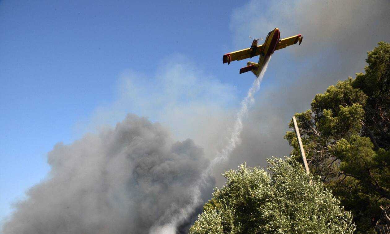 Δύο πυροσβεστικά αεροσκάφη και τέσσερα ελικόπτερα άρχισαν με το πρώτο φως της ημέρας συνεχείς ρίψεις στο πύρινο μέτωπο στην ευρύτερη περιοχή της Ζήριας, στην Αιγιάλεια.
