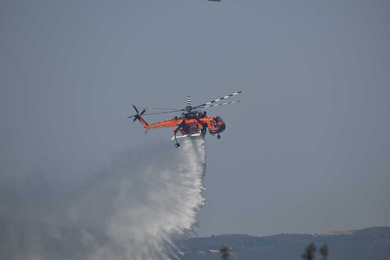 Σύμφωνα με την Πυροσβεστική η φωτιά δεν απειλεί μέχρι στιγμής κατοικημένη περιοχή.