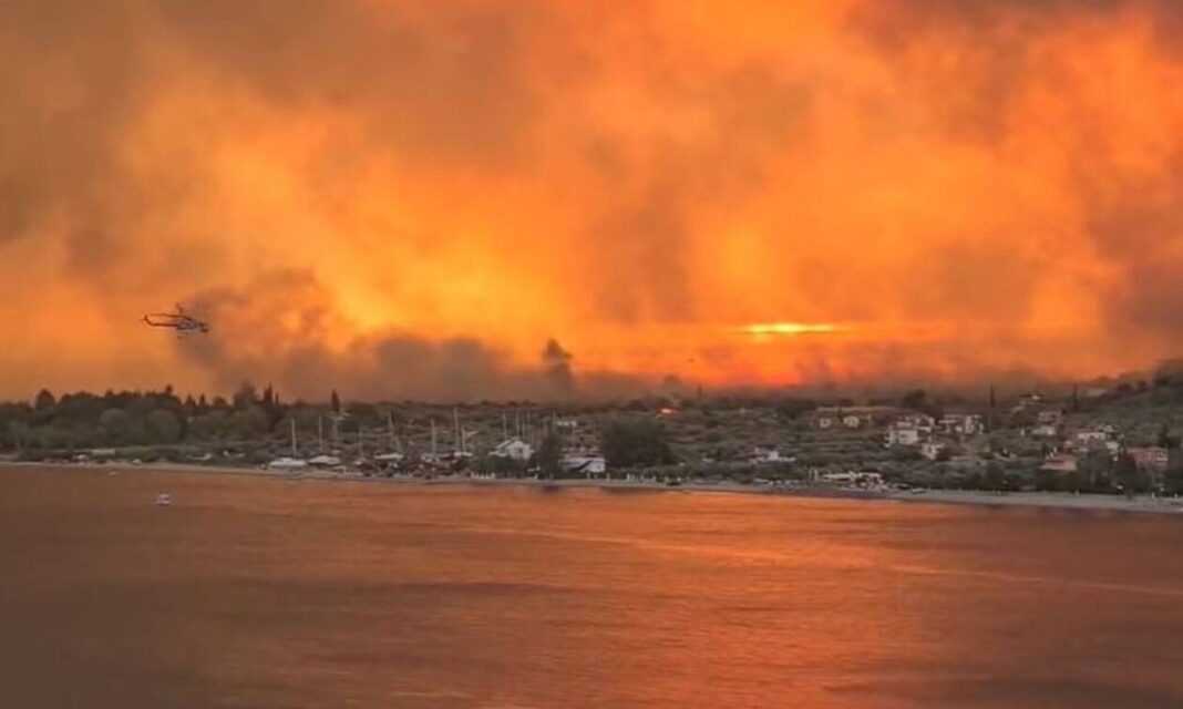 Καίγονται ολοσχερώς οικισμοί γύρω από τη Λίμνη Ευβοίας, σύμφωνα με το δήμαρχο Μαντουδίου, κ. Γιώργος Τσαπουρνιώτη, ο οποίος έκανε λόγο για «ολοκαύτωμα».