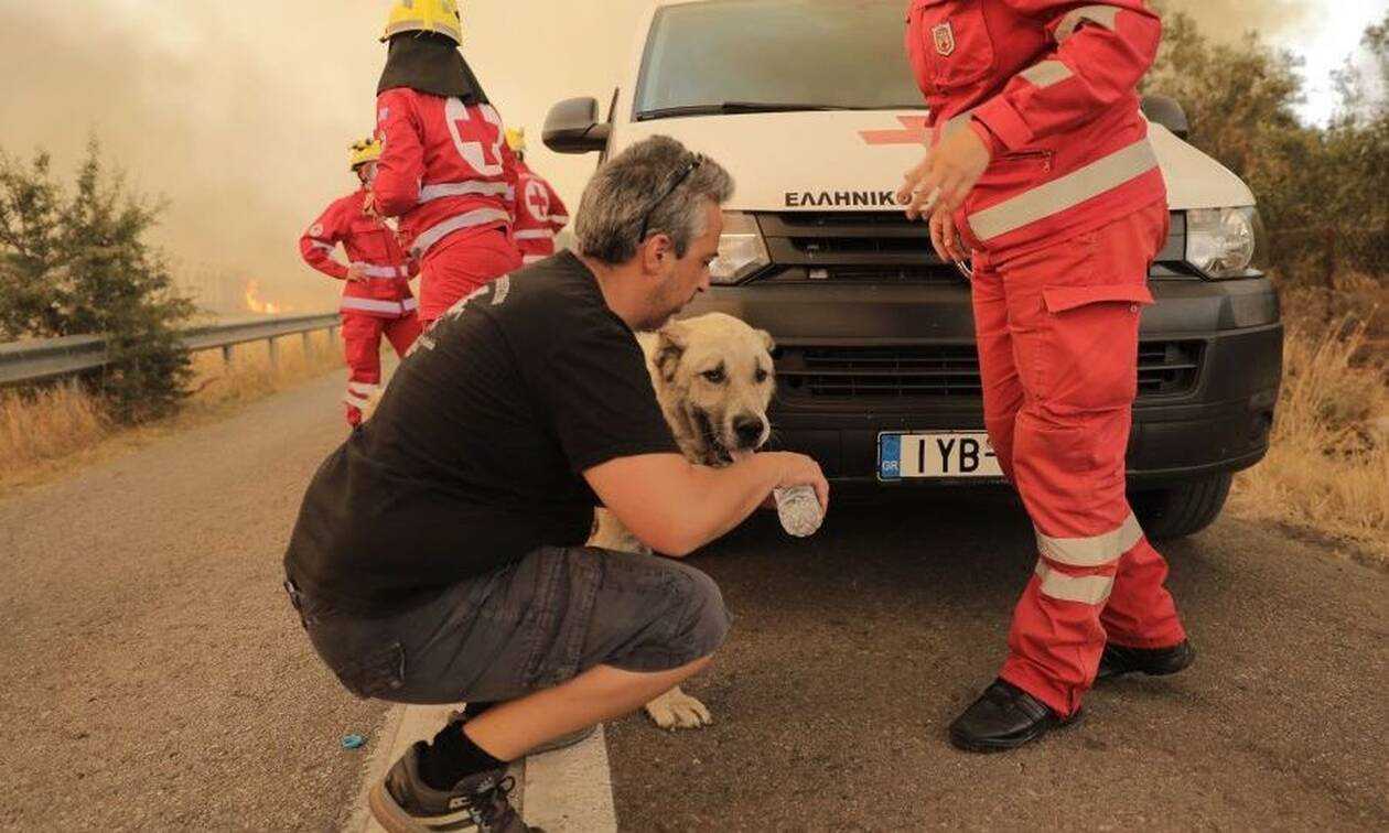 Σκύλοι απομακρύνθηκαν μαζί με τις οικογένειές τους από τις κατοικίες, ενώ τεράστια ήταν η κινητοποίηση των εθελοντών για τη διάσωση δεσποζόμενων και αδέσποτων ζώων. Στην περιοχή της φωτιάς δραστηριοποιείται ο Ερυθρός Σταυρός και πολλές φιλοζωικές οργανώσεις για τη βοήθεια των τετράποδων.