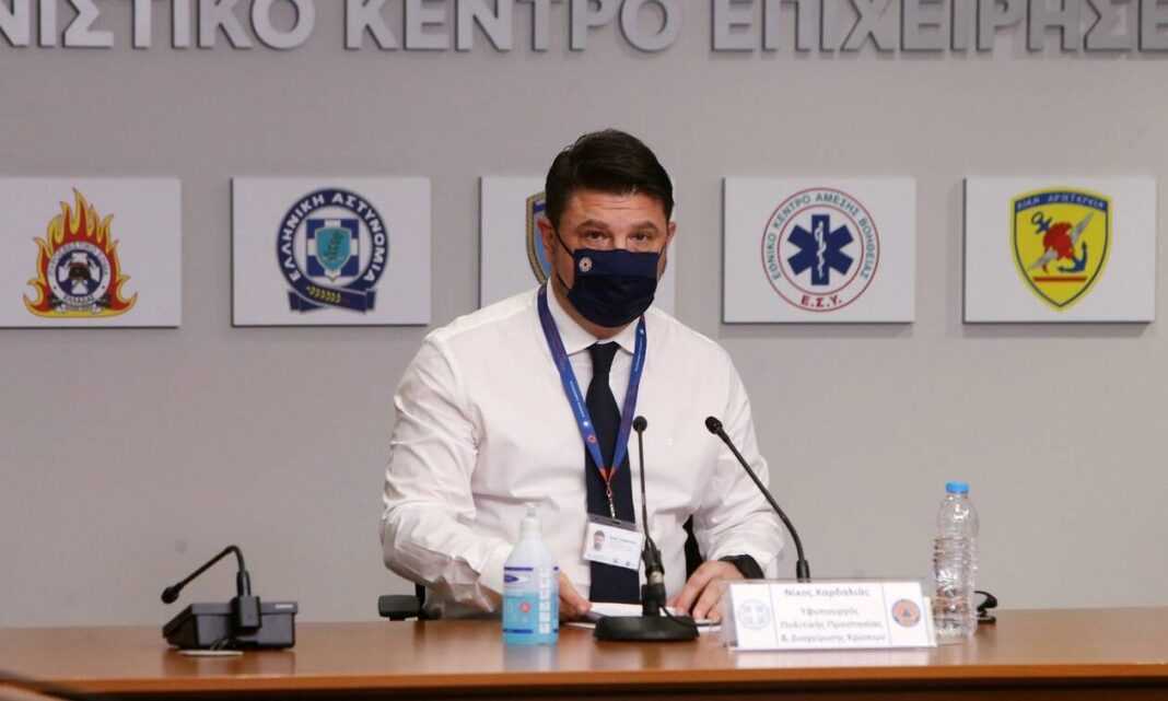 Στη σύσκεψη στο Συντονιστικό μετείχαν, επίσης, ο αναπληρωτής υπουργός Εσωτερικών, Στέλιος Πέτσας, ο υφυπουργός στον πρωθυπουργό, Θόδωρος Λιβάνιος και ο γγ Πολιτικής Προστασίας, Βασίλης Παπαγεωργίου.