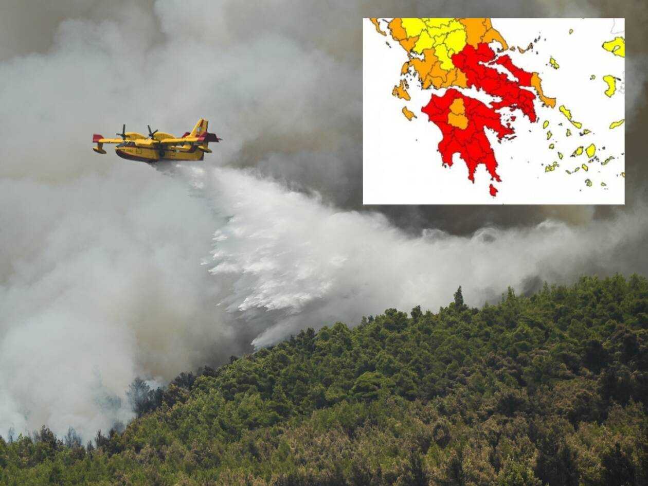 Ακραίος κίνδυνος πυρκαγιάς – Κατάσταση Συναγερμού (κατηγορία κινδύνου 5) για τις εξής περιοχές:
