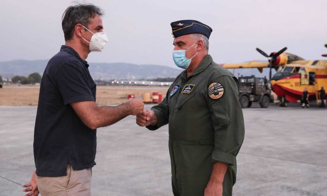 Ο πρωθυπουργός ευχαρίστησε θερμά τους χειριστές για τον αγώνα που δίνουν αδιάκοπα τις τελευταίες ημέρες με τις πυρκαγιές σε όλη τη χώρα