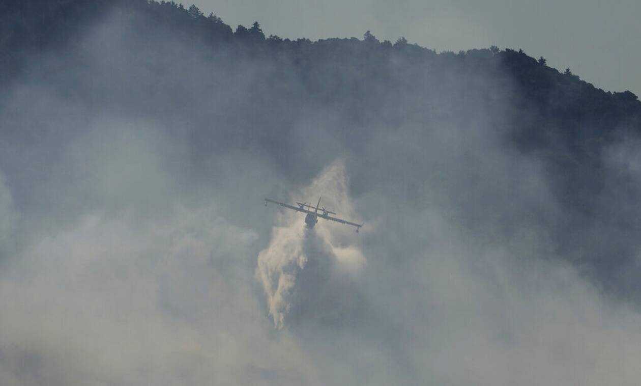 Με το πρώτο φως της ημέρας, πραγματοποιούν ρίψεις νερού, δύο πυροσβεστικά αεροπλάνα.
