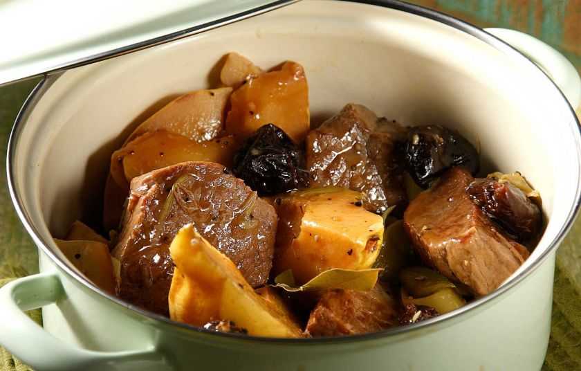 Μοσχάρι με κυδώνια, δαμάσκηνα και πράσα