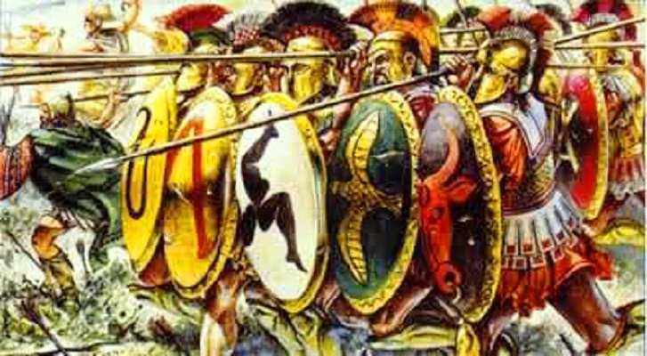 Η απόσταση που χώριζε τα δύο στρατεύματα δεν ήταν μεγαλύτερη των 600-800 μέτρων. Οι Έλληνες βάδιζαν με ταχύ βήμα και έψαλαν τον παιάνα. Μόλις πλησίασαν περισσότερο άρχισαν να αλαλάζουν και να κτυπούν τα δόρατα επί των ασπίδων τους, παράγοντας έναν δαιμονικό θόρυβο.