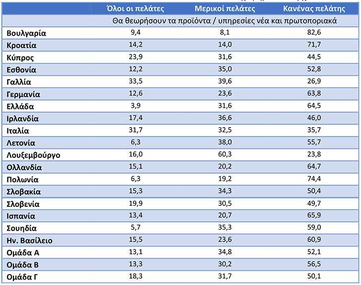 Βαθμός καινοτομίας των νέων επιχειρηματικών εγχειρημάτων ανά χώρα