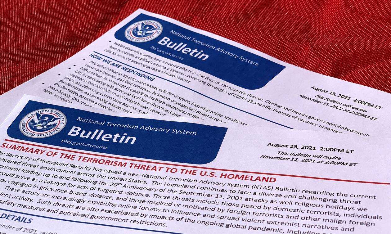 Το υπουργείο Εσωτερικής Ασφάλειας τροποποίησε ένα δελτίο αντιτρομοκρατικού συναγερμού που είχε εκδοθεί τον Ιανουάριο, έπειτα από την επίθεση που πραγματοποίησαν οπαδοί του Ντόναλντ Τραμπ στο Καπιτώλιο, στο οποίο για πρώτη φορά τόνιζε τις εσωτερικές απειλές. Το δελτίο είχε ήδη τροποποιηθεί τον Μάιο, απέναντι στον κίνδυνο «εξτρεμιστές» να εκμεταλλευθούν την άρση των υγειονομικών περιορισμών χάρη στην πρόοδο που έχει επιτευχθεί απέναντι στην πανδημία, προκειμένου να εξαπολύσουν βίαιες επιθέσεις.