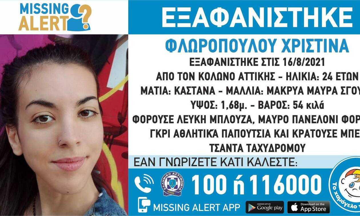 Η 24χρονη Χριστίνα Φλωροπούλου εξαφανίστηκε στις 16/8 από την περιοχή του Κολωνού