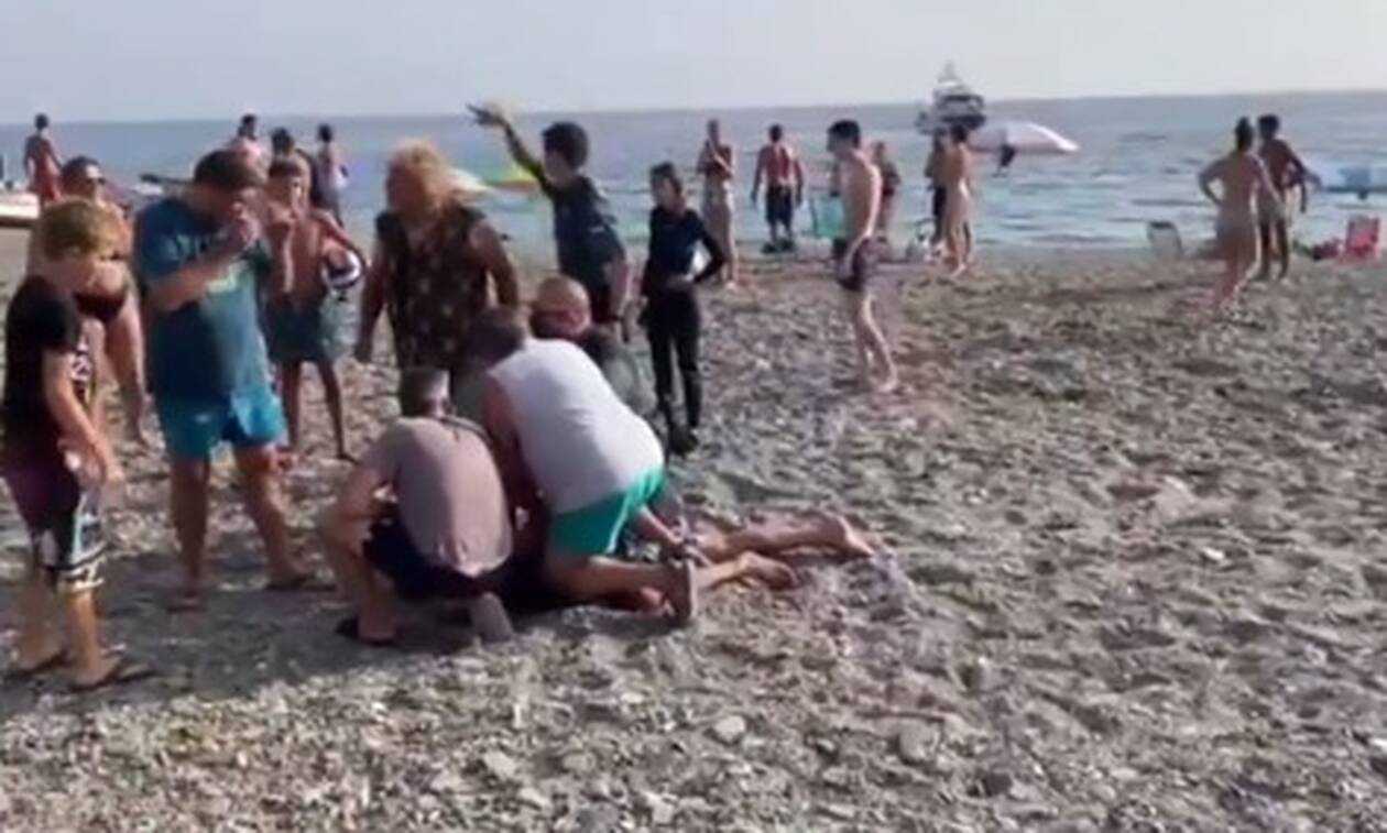 Το περιστατικό καταγράφηκε σε βίντεο. «Έρχεται», ακούγεται να λέει ένας άντρας και προς έκπληξη όλων το σκάφος σχεδόν έπεσε επάνω σε έναν λουόμενο.