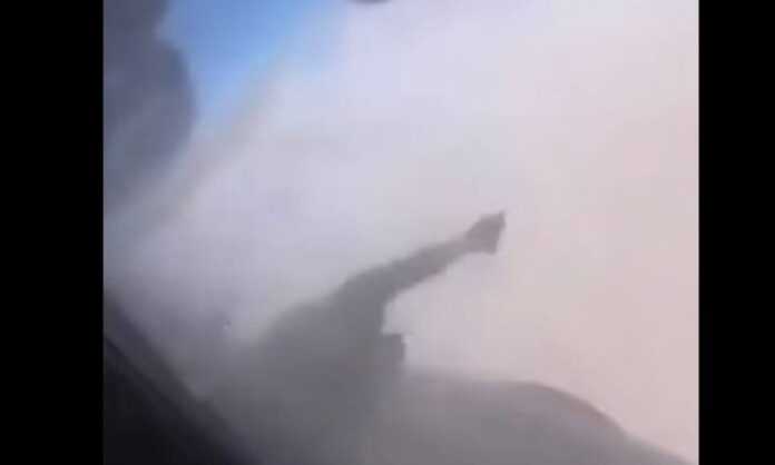 Το βίντεο φαίνεται ότι τραβήχτηκε από το πίσω τζάμι του αμερικανικού μεταγωγικού C-17 και δείχνει τα πόδια ενός άνδρα να προεξέχουν από τον τροχό και να ξεπετάγονται στο πλάι του αεροσκάφους κατά τη διάρκεια της πτήσης.