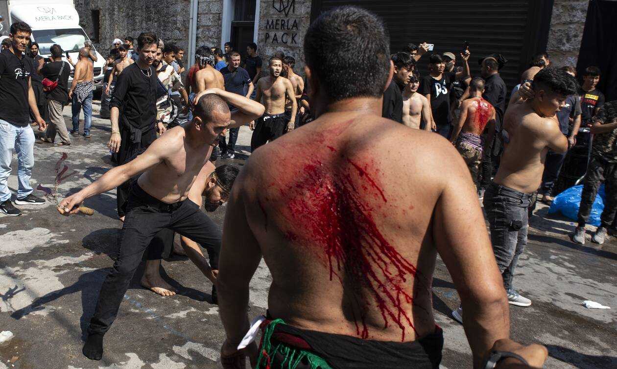 Σοκ προκαλούν οι εικόνες του εορτασμού της «Ασούρα», με το έθιμο του αυτομαστιγώματος των Σιιτών Μουσουλμάνων, στο κέντρο του Πειραιά.