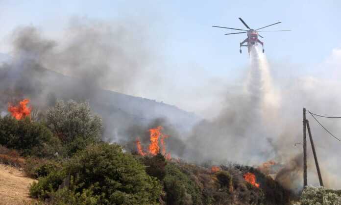 Οι πυροσβεστικές δυνάμεις συνεχίζουν να επιχειρούν κατάσβεση σε αναζωπυρώσεις και εστίες στο Μαρμάρι – Η φωτιά έχει οριοθετηθεί