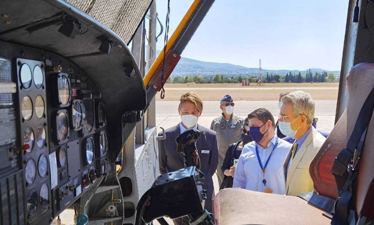 Επίσκεψη στην αεροπορική βάση Δεκέλειας πραγματοποίησαν ο υφυπουργός Πολιτικής Προστασίας και Διαχείρισης Κρίσεων, Νίκος Χαρδαλιάς, και ο Αμερικανός πρέσβης, Τζέφρι Πάιατ, όπου συνάντησαν τους πιλότους των ελικοπτέρων Erickson S-64 και Bell 214 για την προσφορά τους στο έργο της αεροπυρόσβεσης.