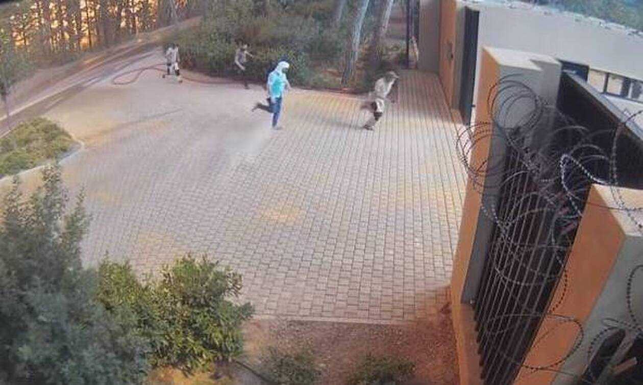 Τα πλάνα που θα δείτε τραβήχτηκαν από τις κάμερες ασφαλείας και δείχνει από την πρώτη στιγμή, τη μάχη που δόθηκε με τις φλόγες. Από την αρχή όπου οι φλόγες βρίσκονταν μακριά, μέχρι και το σημείο που όλοι άφησαν λάστιχα και μάνικες και άρχισαν να τρέχουν, καθώς η φωτιά έφτασε στο σημείο.