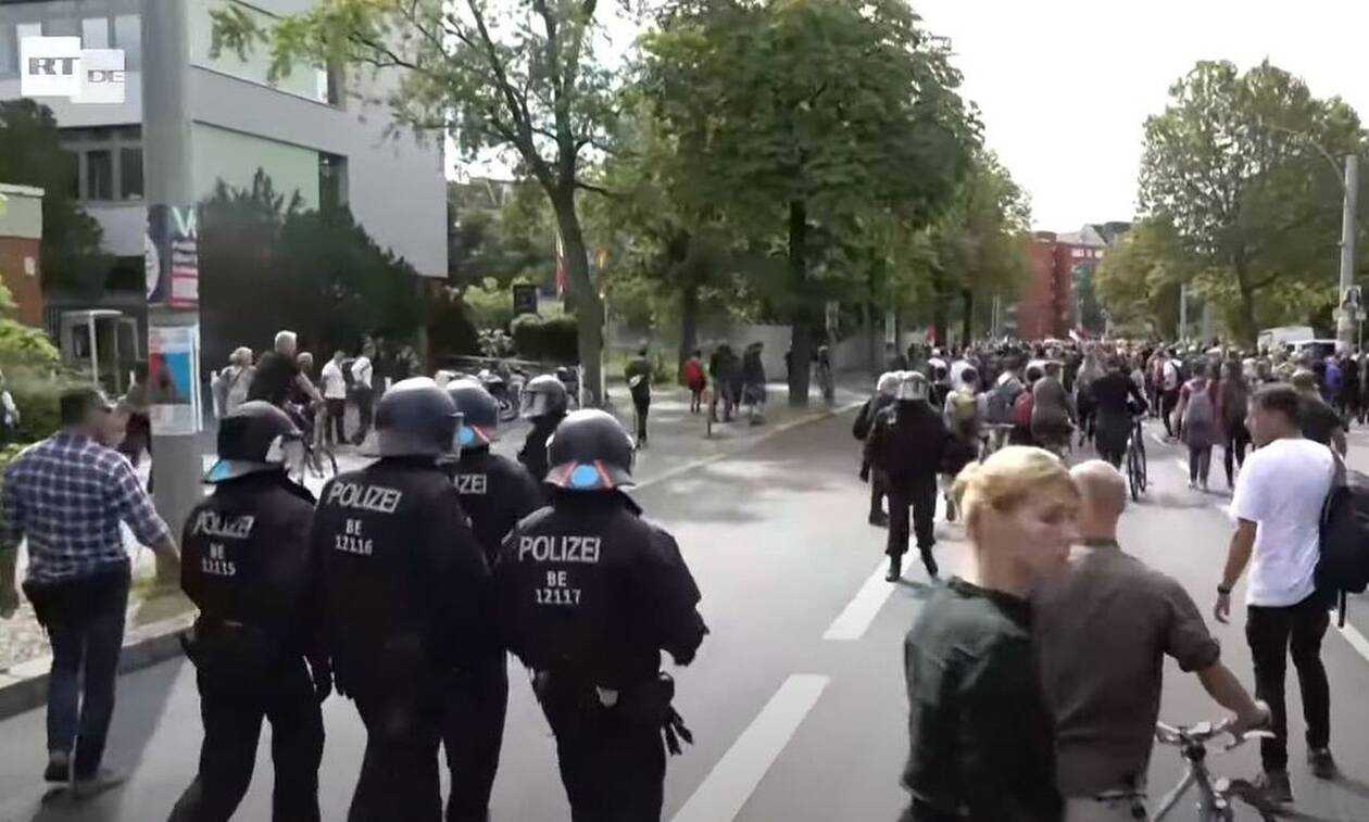 Αστυνομικοί συγκρούστηκαν με διαδηλωτές σήμερα στο Βερολίνο, όπου χιλιάδες άνθρωποι πραγματοποίησαν πορεία, φωνάζοντας συνθήματα και κρατώντας πανό κατά των περιορισμών που συνδέονται με την πανδημία της Covid-19.