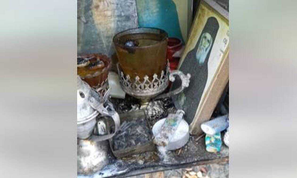 Για θαύμα μιλούν οι κάτοικοι της περιοχής. Το εικονοστάσι είναι καμένο πλήρως αλλά οι εικόνες του Οσίου Δαυίδ έχουν παραμείνει άθικτες.