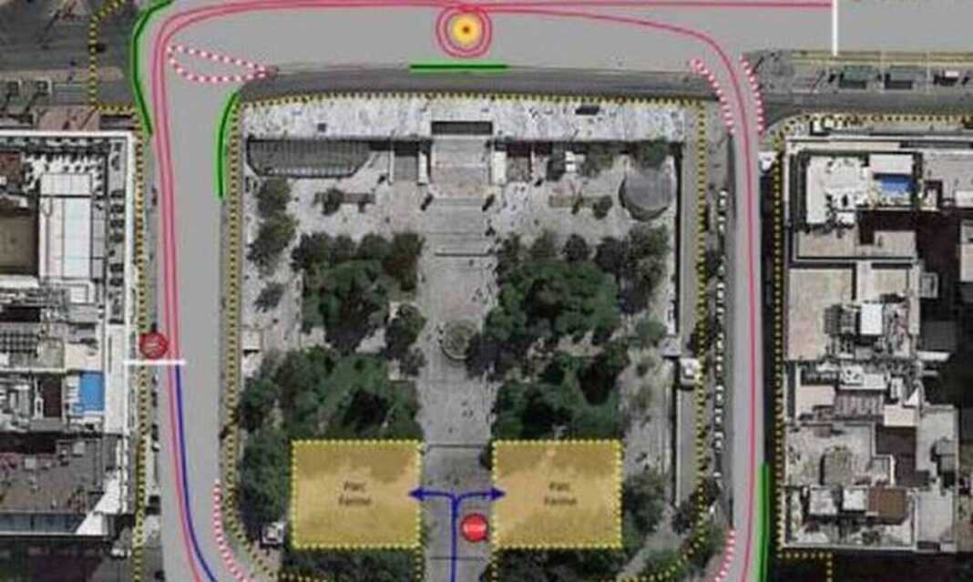 Εκκίνηση Λ. Αμαλίας (ύψος εξόδου του Μετρό προ της εισόδου πάρκινγκ της Βουλής Των Ελλήνων) – συνέχεια Λ. Αμαλίας – περιστροφή γύρω από την ειδικά διαμορφωμένη κατασκευή (roundabout) στο ύψος του Μ.Α.Σ. – συνέχεια Λ. Αμαλίας – αριστερά Β. Γεωργίου Α’ – συνέχεια Β. Γεωργίου Α’ – αριστερά Πλατεία Συντάγματος – περιστροφή γύρω από την ειδικά διαμορφωμένη κατασκευή (roundabout) στο ύψος της οδού Ερμού – συνέχεια Πλατεία Συντάγματος – αριστερά Όθωνος – συνέχεια Όθωνος – αριστερά Λ. Αμαλίας – συνέχεια Λ. Αμαλίας – περιστροφή γύρω από την ειδικά διαμορφωμένη κατασκευή (roundabout) στο ύψος του Μ.Α.Σ. – συνέχεια Λ. Αμαλίας – αριστερά Β. Γεωργίου Α’ – συνέχεια Β. Γεωργίου Α’ – Τερματισμός (ύψος ξεν/χείου «King George»).