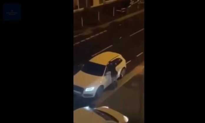 Ο άνανδρος σύντροφος φαίνεται να χτυπά και να βρίζει τη γυναίκα, η οποία στη συνέχεια τον εμβολίζει δύο φορές με το SUV της, παίρνοντας «εκδίκηση».