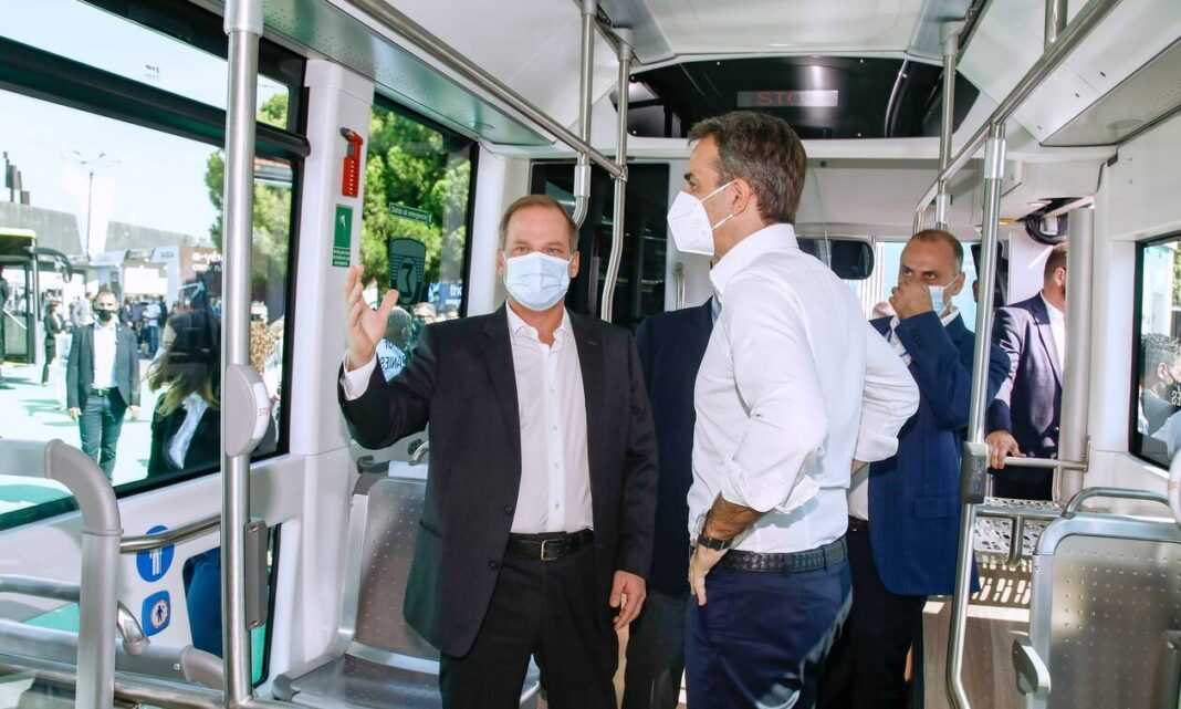 Ο κ. Μητσοτάκης ανέβηκε σε ένα από τα νέα ηλεκτρικά λεωφορεία. Έπειτα, στην είσοδο του ίδιου περιπτέρου, στάθηκε μπροστά από τον ψηφιακό χάρτη με τα έργα υποδομών στην Ελλάδα. Αμέσως μετά συνάντησε τον πρόεδρος τη Αττικό Μετρό Α.Ε. Νίκο Ταχιάο.