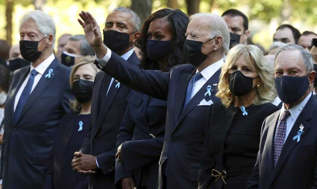 Ο Aμερικανός πρόεδρος Τζο Μπάιντεν παρέστη στην τελετή στη μνήμη των 2.977 νεκρών των επιθέσεων (εκ των οποίων οι 2.753 στη Νέα Υόρκη), δίπλα στους προκατόχους του στην προεδρία Μπαράκ Ομπάμα και Μπιλ Κλίντον.