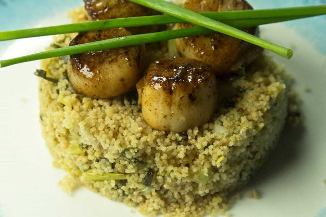 Θαλασσινά Συνταγή: Μια συνταγή απλή και εύκολη, με την προϋπόθεση να ακολουθήσει κανείς επακριβώς τα σημεία προσοχής που αναλύονται πιο κάτω. Θα σας πάρει πρακτικά λιγότερο από 20’ χωρίς να υπολογίζω τον χρόνο απόψυξης και στεγνώματος των χτενιών. Αντί για κουσκούς, μπορεί κάποιος να συνδυάσει τα συγκεκριμένα χτένια σε ριζότο ή ζυμαρικά, πάντα με χρήση βούτυρου. Στη συνταγή επέλεξα να χρησιμοποιήσω Light βούτυρο λόγω καλοκαιριού, αλλά αν θέλετε πιο έντονα βουτυράτη γεύση μπορείτε να χρησιμοποιήσετε και το κανονικό. Το μαντεμένιο τηγάνι βοηθά σε τέτοιες μαγειρικές κρατώντας υψηλά τη θερμοκρασία, αλλά κάλλιστα μπορεί να χρησιμοποιηθεί και ένα αντικολλητικό.