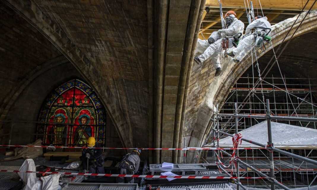 Η τελική φάση των προσπαθειών να ασφαλιστεί ο σκελετός του ναού περιελάμβανε την ενίσχυση των κατεστραμμένων από τη φωτιά θόλων με τεράστια ξύλινα πλαίσια, ανέφερε η κρατική υπηρεσία που ηγείται των εργασιών, προσθέτοντας πως βρίσκεται σε καλό δρόμο προκειμένου να επιτευχθεί ο στόχος που έχει θέσει ο πρόεδρος Μακρόν σχετικά με την ημερομηνία επαναλειτουργίας.