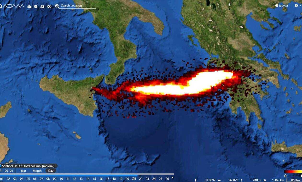 Ο Σάκης Αρναούτογλου δημοσιοποίησε εικόνα που δείχνουν εκπομπές διοξειδίου του Θείου πάνω από την Ελλάδα.
