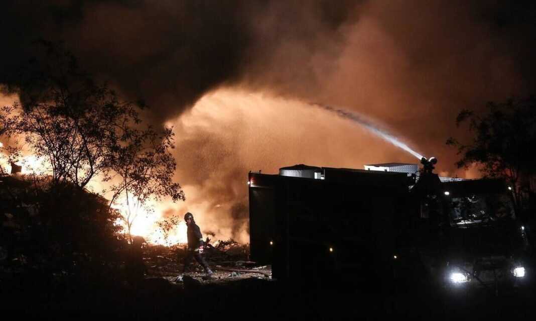Σύμφωνα με ενημέρωση από την Πυροσβεστική Υπηρεσία, η κατάσβεση της φωτιάς είναι δύσκολη, λόγω του μεγάλου πυροθερμικού φορτίου.